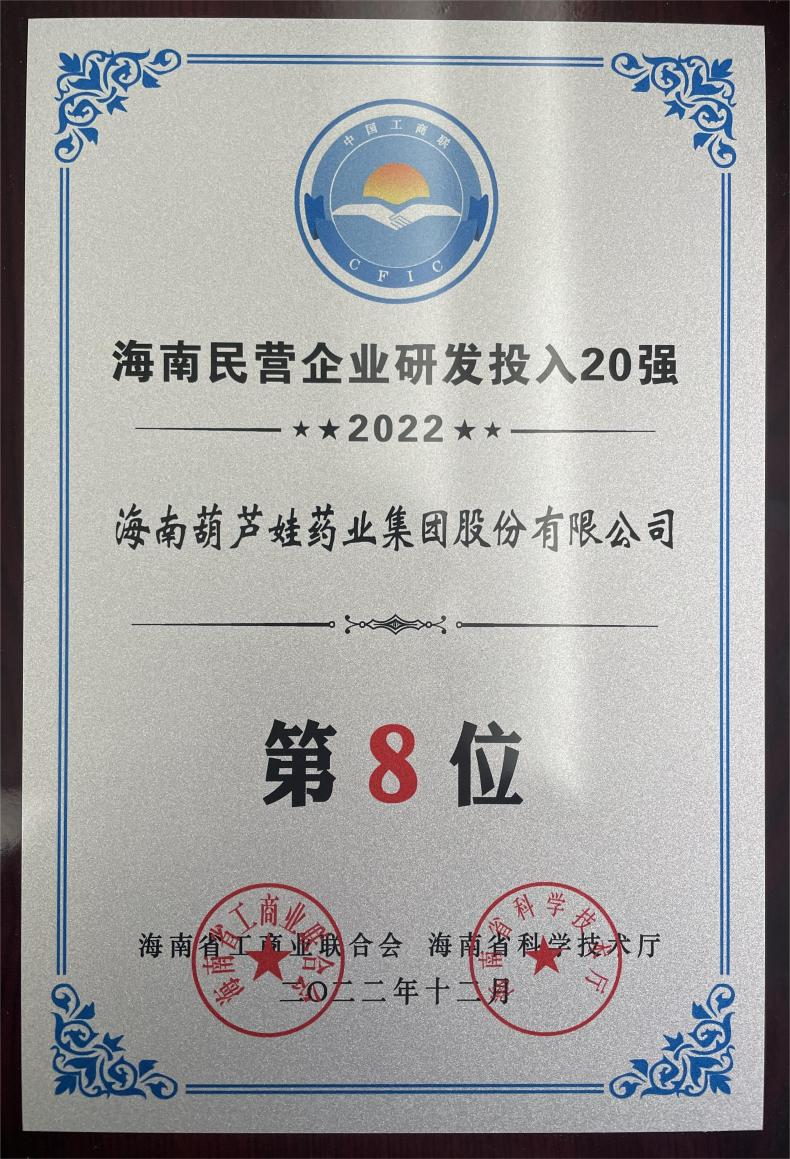 12月23日,2022海南民营企业50强和研发投入20强发布会在海口举行。会上发布了“2022海南民营企业50强”“2022海南民营企业研发投入20强”榜单和分析报告。尊龙凯时药业再次荣登两榜,在海南民营企业50强榜单中位列第25位,较去年上升8位,这也是公司连续三年登榜;在海南民营企业研发投入20强中位列第8位,较去年上升7位。